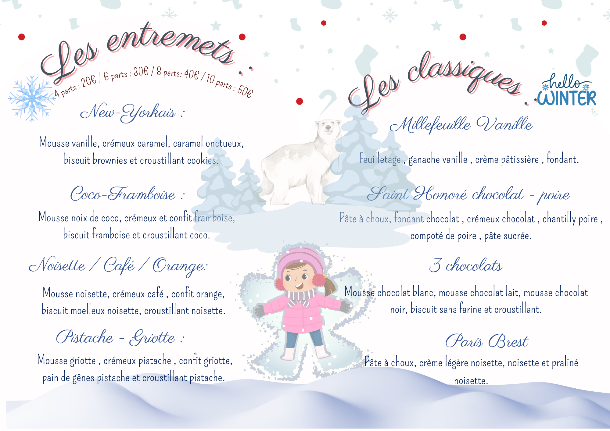 Retrouvez en boutique, une sélection de desserts individuels, ainsi que des macarons, cakes, cookies, jus de fruits et pleins d'autres choses.